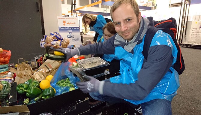 David Schweitzer erzählt: „Alle wissen, dass es schnell gehen muss, damit die vielen Tonnen an Messeobst für den guten Zweck gerettet werden können.“