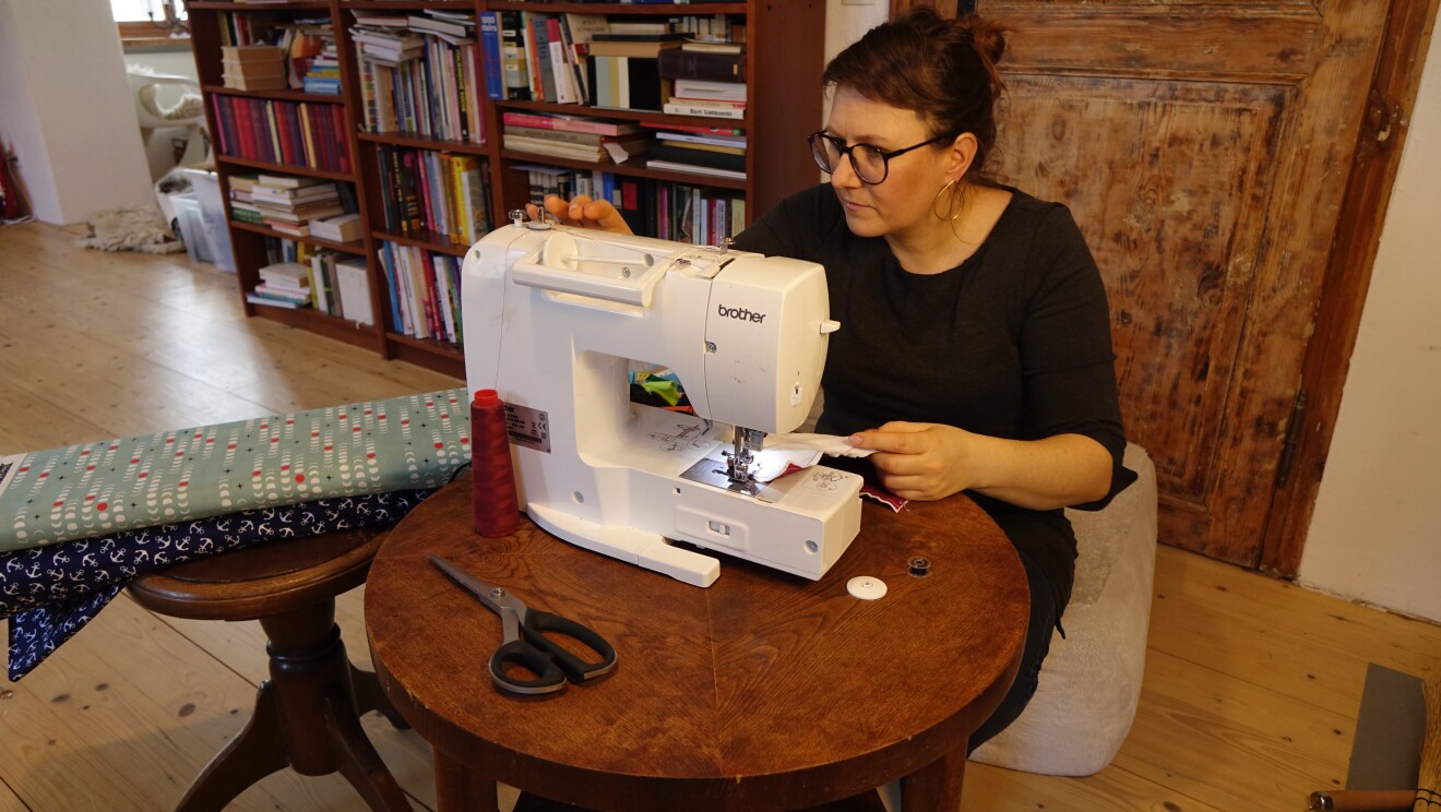 Als Architektin ist sie es gewohnt, analytisch zu denken. Sie nimmt die Windel genauer unter die Lupe: „So `ne Windel hat eigentlich drei Funktionen. Sie muss am Körper halten, sie muss was aufsaugen und vor Nässe schützen“. Drei Funktionen also, denen es gerecht zu werden galt. Stephanie beginnt mit der Materialsuche. Welcher Stoff ist geeignet? Was hält dicht? Sie besorgt sich verschiedene Stoffe und macht sich an die Arbeit. Nur Nähen konnte Stephanie leider nicht. Die lokale Bibliothek ist ihre erste Anlaufstelle. Mit Büchern übers Nähen und der alten Nähmaschine ihrer Schwiegermutter beginnt sie das Tüfteln. „Zu der Zeit ist Stephanie eigentlich immer nach mir ins Bett gegangen“, erinnert sich ihr Mann Volker. Bis nachts um ein oder zwei Uhr näht und werkelt sie, bis sie zufrieden ist. Ihr Ergebnis: der Prototyp der Windelmanufaktur.