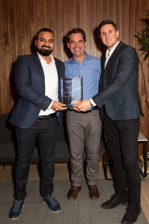 Für InnovaMaxx freuten sich Dawood Shahid (links) und Tobias Theil (rechts) über den Award als Export Champion des Jahres.Foto von Suzi PrattKMU sind nicht nur eine wichtige Säule der deutschen Wirtschaft, es stammen auch weltweit mehr als die Hälfte aller bei Amazon verkauften Produkte von Verkaufspartnerinnen und Verkaufspartnern. Das feierte Amazon mit dem Höhepunkt der Reise: Bei einem Award Dinner überreichte Nicholas Denissen, Vice President Small Business und damit dafür verantwortlich, die nötigen Rahmenbedingungen für den Erfolg von KMU auf Amazon zu schaffen, den Preisträgerinnen und Preisträgern den verdienten Pokal.